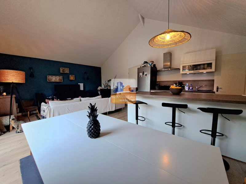 Vous serez séduit par son bel espace de vie déplafonné, apportant volume et caractère, comprenant un salon-séjour convivial ouvert sur une cuisine moderne, parfaite pour partager des moments en famille ou entre amis.