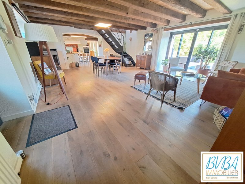 Au rez-de-chaussée, vous découvrirez une belle pièce de vie donnant sur une terrasse exposée Sud, alliant cachet de l'ancien et confort moderne, avec poutres apparentes et poêle à pellets avec thermostat, ouverte sur une cuisine aménagée et équipée de qualité. Une chambre, une salle d'eau et un WC ainsi qu'un grand cellier complètent ce niveau.