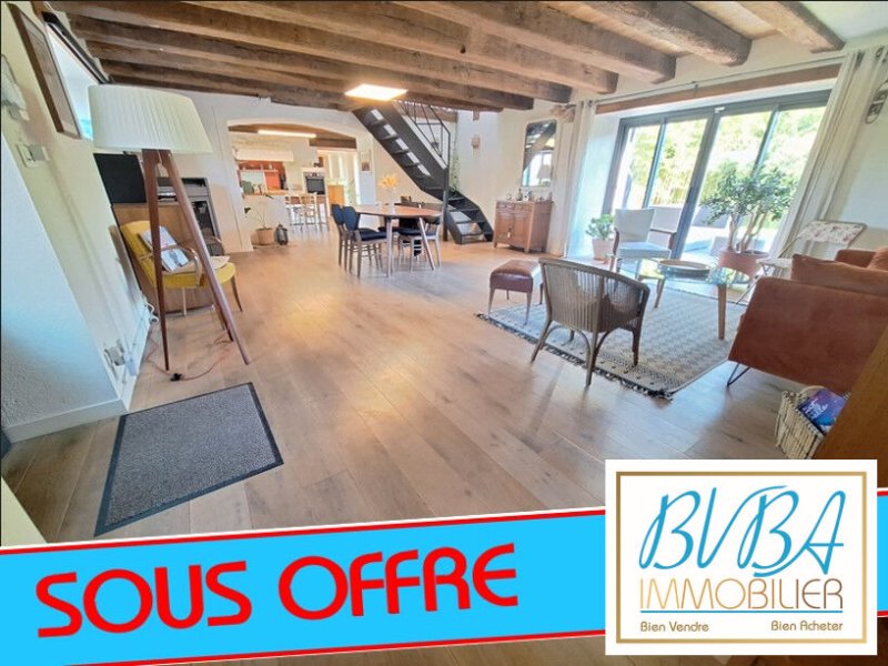 Au rez-de-chaussée, vous découvrirez une belle pièce de vie donnant sur une terrasse exposée Sud, alliant cachet de l'ancien et confort moderne, avec poutres apparentes et poêle à pellets avec thermostat, ouverte sur une cuisine aménagée et équipée de qualité. Une chambre ou un 2ème salon, une salle d'eau et un WC ainsi qu'un grand cellier complètent ce niveau.