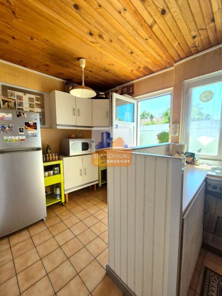 La maison est composée d'un salon et d'un séjour (pouvant être cloisonné en 3 eme chambre), une cuisine, un dégagement menant sur deux chambres spacieuses (19,12m² et 10,49m²), un WC et une salle d'eau.