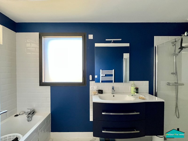 À l'étage, 2 chambres avec porte fenêtre, une salle de bain avec baignoire et douche, et un deuxième WC séparé.