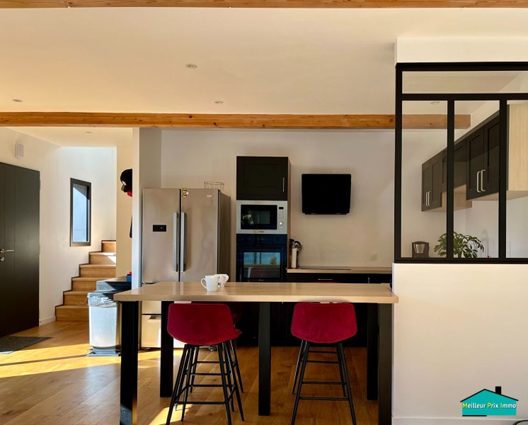 Elle se compose, au rez-de-chaussée, d'une grande pièce de vie de 47 m² avec cuisine aménagée/équipée, d'un cellier ou bureau (également aménageable en chambre), de WC séparés, et d'un accès direct à la terrasse et sa belle exposition.