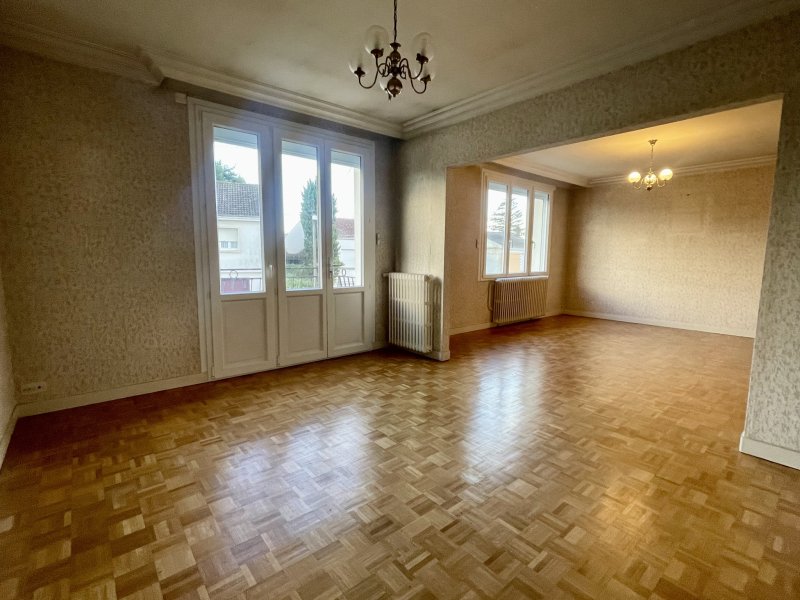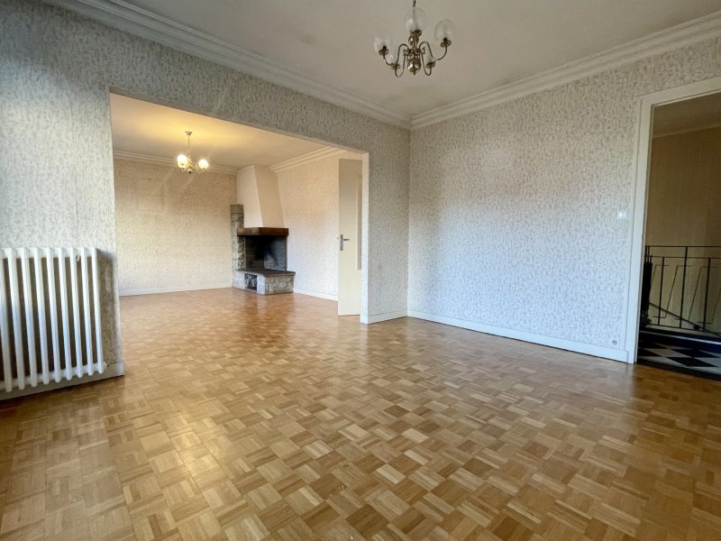 BOURG. Laissez aller votre imagination pour la décoration ! Maison de 150 m2. RDC : hall d'entrée, salle de loisirs, chambre, lingerie. Etage : vaste palier, réception sur parquet, cuisine aménagée, 2 chambres, salle de bains. Combles aménageables. Dépendances non attenantes de 90 m2 pour les grands bricoleurs. Les informations sur les risques auxquels ce bien est exposé sont disponibles sur le site Géorisques : www.georisques.gouv.fr