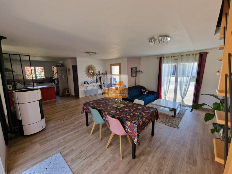 Une belle pièce de vie lumineuse, offrant un espace convivial pour recevoir ou se détendre, une cuisine aménagée et équipée (Four, plaques, lave-vaisselle, hotte)