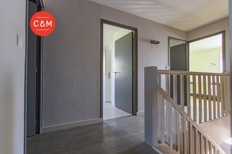 L'entrée avec rangements mène à une vaste pièce de vie avec poêle à bois, prolongée par une cuisine entièrement équipée, ouverte de plain-pied sur une grande terrasse et un beau jardin sans vis-à-vis. Le rez-de-chaussée comprend également deux chambres, un bureau, une salle de bains avec douche et baignoire, un wc, une arrière-cuisine et une buanderie. À l'étage, vous trouverez trois chambres supplémentaires, une salle d'eau ainsi qu'un second wc.