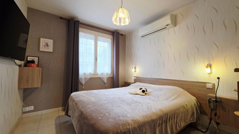 18000 - BOURGES - QUARTIER AÉROPORT CHEMIN DE VILLENEUVE - EN EXCLUSIVITÉ - Située au calme belle maison de 166.5 m² environ au sol soit 133.6m² environ à une hauteur de 1m80, 8 pièces 7 chambres comprenant en rez-de-chaussée : Entrée, Salon séjour, Cuisine ouverte et aménagée, dégagement desservant : 3 Chambres, Salle de douche, Buanderie, Wc - Au 1er niveau : Palier bureau distribuant 4 chambres mansardées, Salle de bain, wc - Jardin clos et arboré avec terrasse et piscine, pompe et liner récents - Garage double indépendant - Double vitrage avec volets roulants automatisés - Chauffage pompe à chaleur climatisation réversible, électrique et poêle à granulés - Très bon état général - Budget : 261000 euros Honoraires d'agence à la charge du vendeur - Pour visiter et obtenir plus de renseignements contactez Sylvain COLLOT au 06.15.09.63.11 . RCS 487 624 777 Mandat n° : 429361