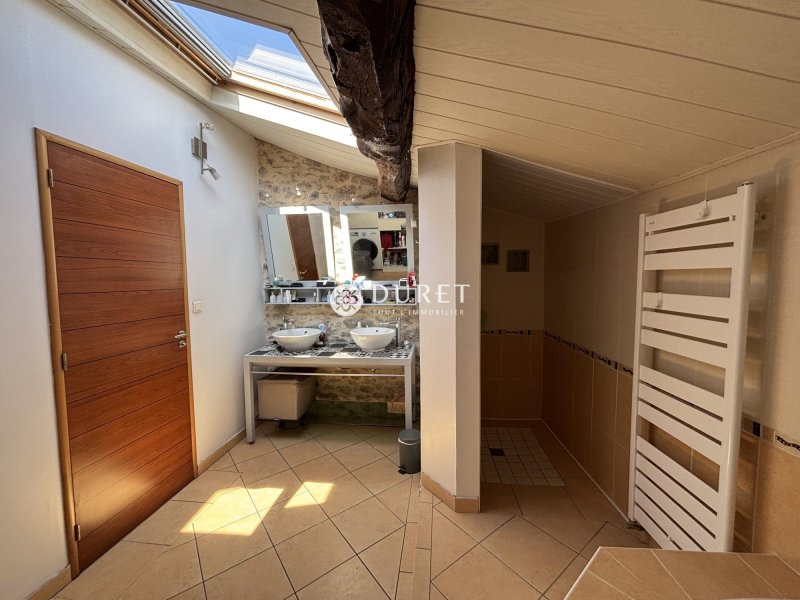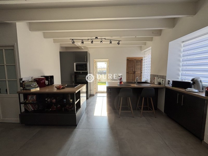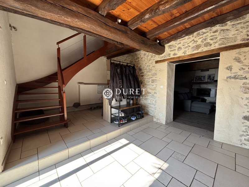 Située en village, au calme tout en restant à seulement 2 km du bourg et de ses commodités, cette charmante maison ancienne d'environ 168 m² habitables séduira les amateurs d'authenticité et de beaux espaces. Dès l'entrée, vous découvrez un vaste hall avec espace bureau ouvert, menant à un salon chaleureux de 32 m², agrémenté d'une cheminée et de murs en pierre apparente. La cuisine dinatoire, également de 32 m², offre de superbes volumes avec belle hauteur sous plafond et poutres apparentes, idéale pour recevoir. Un WC indépendant complète le rez-de-chaussée. À l'étage, un palier dessert quatre belles chambres (13,80 m², 13,20 m², 18,12 m² et 18,50 m²), une grande salle de bains avec douche et baignoire de 9,80 m² ainsi qu'un second WC indépendant. Côté extérieur, vous profiterez d'un jardin attenant, entièrement clos, accessible directement depuis la cuisine avec terrasse, parfait pour les moments de détente. Une dépendance vient compléter l'ensemble. Un second jardin entièrement clos de 378 m² avec un abri bois, situé à seulement 10 mètres de la maison, offre un espace supplémentaire appréciable. Maison saine, bien entretenue et bénéficiant d'une bonne performance énergétique. Un bien rare sur le secteur, alliant charme de l'ancien, volumes généreux et environnement paisible. À découvrir sans tarder ! THB Honoraires inclus de 4.78% TTC à la charge de l'acquéreur. Prix hors honoraires 230 000 . Classe énergie C, Classe climat A Montant estimé des dépenses annuelles d'énergie pour un usage standard : entre 1570.00 et 2180.00 sur les années 2021, 2022 et 2023 (abonnements compris). Les informations sur les risques auxquels ce bien est exposé sont disponibles sur le site Géorisques : georisques.gouv.fr.