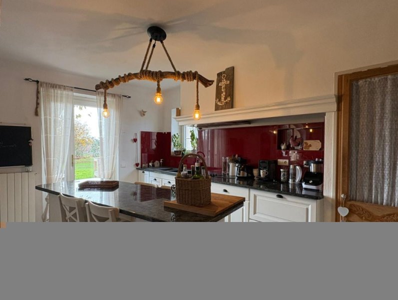 -Un salon lumineux de 35 m² avec poêle à bois, ouvert sur