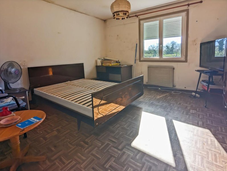 D'une entrée, une cuisine ouverte sur la pièce de vie, salle d'eau, wc, 3 chambres