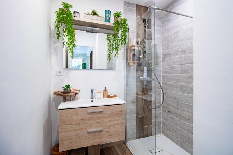 D'une grande pièce de vie ouverte sur la cuisine aménagée communiquant sur la véranda, 1 chambre avec salle d'eau, wc