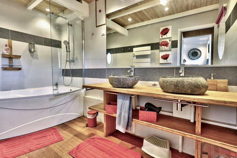 CARANTEC (29660), Dans un écrin de verdure avec vue mer, cette maison / gîtes, en pierres et ardoises de pays vous comblera de bonheur. Elle comprends, sur 3 niveaux: Une cuisine Aménagée et équipée avec terrasse, 1 pièce de vie avec foyer à bois pour les bonnes soirées d'hiver pour contempler la mer et la baie de MORLAIX. 4 chambres avec salle d'eau ou salle de bains. En extérieur : Deux chalets dans lesquels vous pourrez profiter d'un SPA et d'un HAMMAN et à coté une salle de jeux pour les enfants ou bureau.