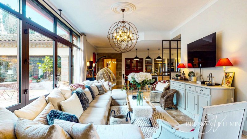 DEMEURE DE CHARME - ANCIENNE CAVE VITICOLE, RÉNOVATION COMPLÈTE avec PISCINE, SALLE DE SPORT et GARAGES / Bruno VUILLEMIN : +33 (0)6.38.50.27.17 / A quelques encablures de Carcassonne, village recherché, en position dominante, sans vis-à-vis, cette ancienne cave viticole a été entièrement redistribuée et rénovée par la société de construction des Propriétaires actuels.
