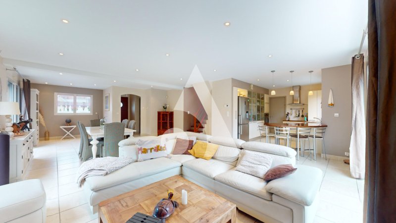 Aux portes de Nantes, découvrez cette belle contemporaine située en plein bourg de Carquefou, proche de toutes commodités. Son entrée avec placard ouvre sur une pièce de vie traversante très lumineuse grâce à ses larges baies vitrées à galandage. La cuisine aménagée et équipée est prolongée par une arrière cuisine. Vous pourrez profiter d'une vie de plain-pied grâce à la chambre parentale disposant d'un dressing et salle d'eau privative. Une chambre aménagée en bureau et un garage complètent ce niveau. A l'étage, le palier distribue trois chambres et une salle de bains avec baignoire d'angle et douche. L'extérieur finira de vous séduire avec sa belle piscine chauffée dans un jardin idéalement arboré. Pour plus d'informations, contactez Sandrine au 06 18 06 16 57.