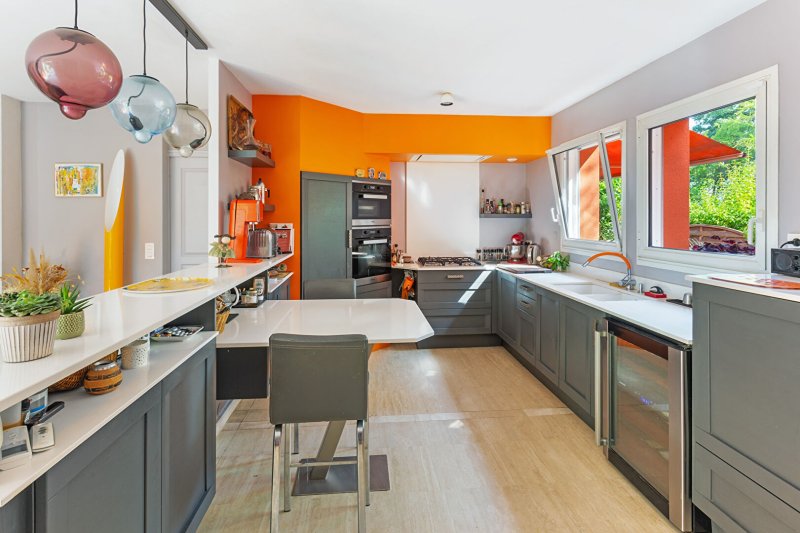 Située dans l'un des quartiers les plus prisés de Carquefou, cette belle maison familiale de 168 m² saura vous séduire par ses volumes généreux, son environnement calme et ses prestations de qualité. Édifiée sur une parcelle paysagée de 1 000 m², la maison offre un cadre de vie privilégié, idéal pour une famille en quête de confort et de sérénité. Au rez-de-chaussée, vous découvrirez une pièce de vie spacieuse et lumineuse avec cheminée, ouverte sur le jardin et la piscine, une cuisine entièrement équipée aux finitions soignées et un salon bibliothèque ainsi qu'une suite parentale avec salle d'eau et dressing. L'espace nuit se compose de 3 chambres, offrant à chacun son espace privé. Les matériaux utilisés sont de grande qualité, assurant durabilité et élégance. Une quatrième chambre est possible à l'étage. À l'extérieur, le jardin arboré et la piscine invitent à la détente et sont complétés par une cuisine d'été. Un cellier, une cave et un garage viennent compléter ce bien.
