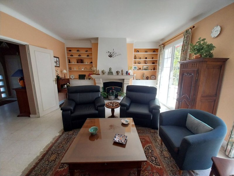 Dès l'entrée, vous découvrirez un hall accueillant avec placard menant à un salon-séjour baigné de lumière, sublimé par une cheminée chaleureuse et ouvert sur un magnifique parc paysagé de 6 740 m², exposé plein sud, entièrement clos et sans aucun vis-à-vis ? un véritable havre de paix.
