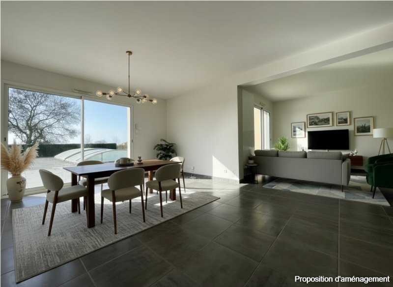 Située au calme d'une impasse, avec une magnifique vue dégagée et à proximité des écoles, cette maison familiale de style contemporain propose des prestations haut de gamme et matériaux de qualité. Une belle entrée distribue une pièce à vivre spacieuse et très lumineuse, orientée plein sud et tournée vers les extérieurs. La cuisine, entièrement équipée, s'ouvre sur la terrasse et est complétée par une buanderie fonctionnelle, offrant un usage quotidien optimisé. Le logement comprend quatre chambres, dont une suite parentale avec salle d'eau privative, ainsi qu'un bureau adapté au télétravail et une salle de bains supplémentaire. Un garage vient compléter l'ensemble. Le terrain, joliment aménagé et nécessitant peu d'entretien, dispose d'une piscine chauffée et couverte, garantissant des conditions de baignade agréables tout au long de l'année. vidéo de présentation en cliquant sur le lien suivant https://www.facebook.com/reel/1634620514388792 Pour tous renseignements, n'hésitez pas à contacter Axel GASNIER, agent commercial, EI, RCS (979 213 006) au 06.01.76.64.87 Les informations sur les risques auxquels ce bien est exposé sont disponibles sur le site Géorisques : www.georisques.gouv.fr