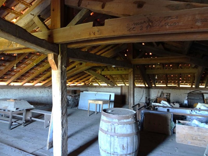 Grenier 110 m², ancienne étable attenante, box animaux.