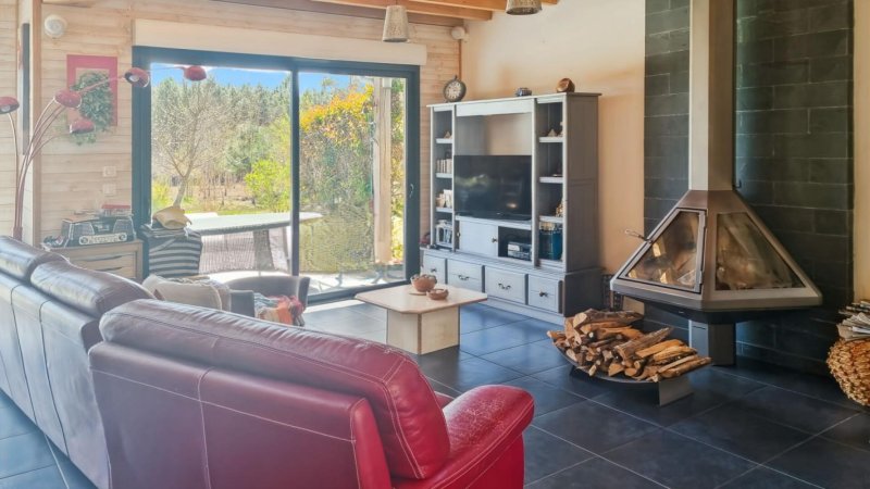 Charme et beaux volumes aux prestations de qualité pour cette belle maison d'architecte ossature bois entièrement ouverte sur la nature. Cette maison est composée d'un espace de vie d'environ 50 m² avec sa cuisine ouverte donnant sur la terrasse, une arrière cuisine, une chambre parentale avec dressing, salle de bain et douche à l'italienne, lingerie .A l'étage une mezzanine, deux chambres et une salle de bains et douche. WC.