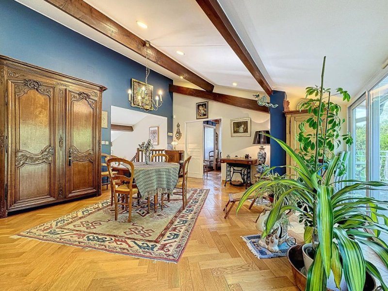 Elle se compose d'un bel espace de vie avec salon chaleureux équipé d'une cheminée, d'une salle à manger lumineuse avec accès balcon, ainsi que d'une cuisine indépendante donnant directement sur une agréable terrasse.