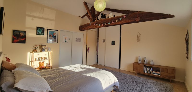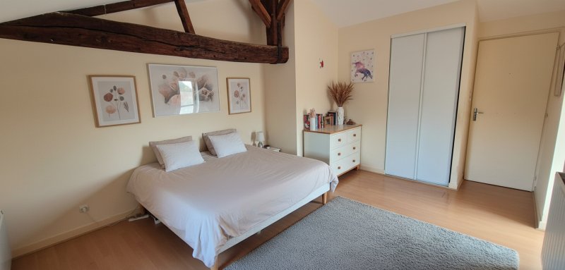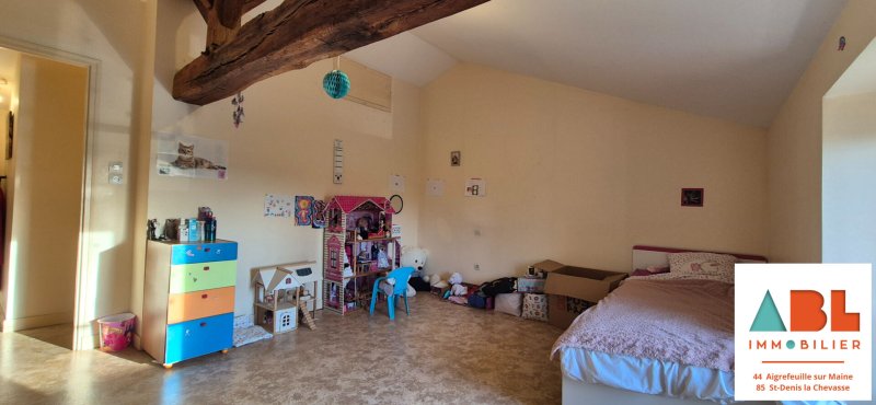 En campagne à proximité de St-Denis la Chevasse, cette longère en pierre d'une surface de 128m² est composée d'une entrée, une cuisine de 17m², une buanderie de 4.7m², un wc et un salon de 23m². A l'étage avec poutres apparentes, un dégagement, 3 chambres de 14 à 17m², un wc et une salle d'eau à refaire.