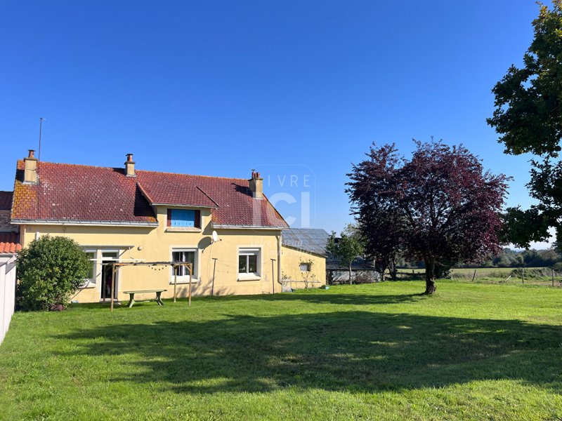 * une maison d'habitation de 114 m² avec séjour exposé sud, cuisine, sbd, wc et 4 chambres sur parquet ancien, grand jardin exposé sud avec vue sur la campagne.
