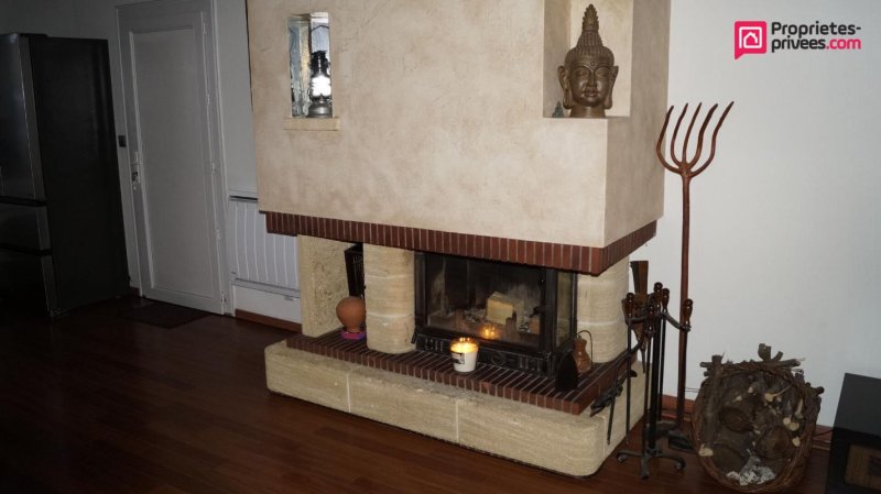Au rez-de-chaussée, une belle entrée avec murs en pierre et rangements nous amène sur un double salon/séjour cathédral traversant, très lumineux et chaleureux d'environ 60m². Cet espace volumineux est composé d'une cheminée à insert avec une conduite de distribution à l'étage, un four à pain/pizza (réalisé sur mesure par un artisan), un espace salon spacieux et d'une grande salle à manger qui donne accès à l'espace terrasse par une grande porte-fenêtre.