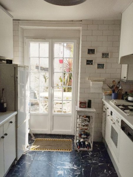 Elle est composée au rez-de-chaussée d'un vaste séjour de 33 m2 traversant et d'une cuisine aménagée et équipée avec une porte fenêtre donnant directement sur un jardinet intime.
