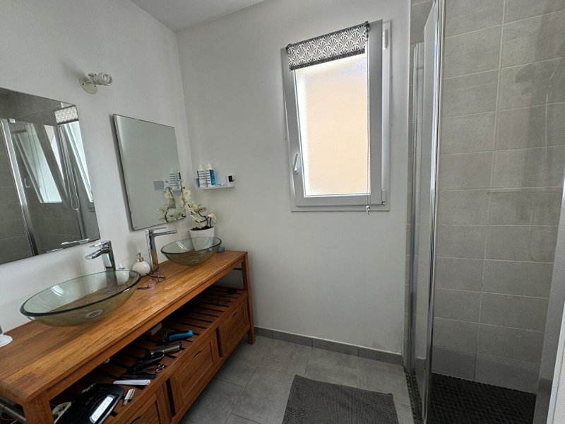 Une entrée, salon séjour chaleureux avec poêle à granulés, cuisine équipée et aménagée, une buanderie. Un espace nuit composé de 3 chambres avec placards, une salle d'eau double vasque avec rangement ainsi qu'un WC séparé avec lave main.