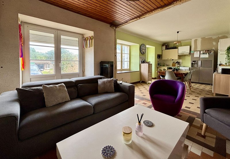 La bâtisse principale comporte actuellement une surface habitable de 92 m² comprenant: une pièce de vie avec espace cuisine, 3 chambres, une salle d'eau, une buanderie, un wc.