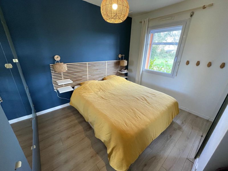 Dès l'entrée, cette maison séduit par ses volumes, sa luminosité et son environnement paisible. L'espace de vie de 47 m², baigné de lumière grâce à sa triple exposition est, sud et ouest, offre un cadre chaleureux et convivial au quotidien. Dans son prolongement, vous profitez d'une belle cuisine ouverte aménagée et équipée de 14 m² (plaque induction, four électrique, micro-ondes, lave-vaisselle, hotte), avec accès direct à une buanderie aménagée, particulièrement pratique.