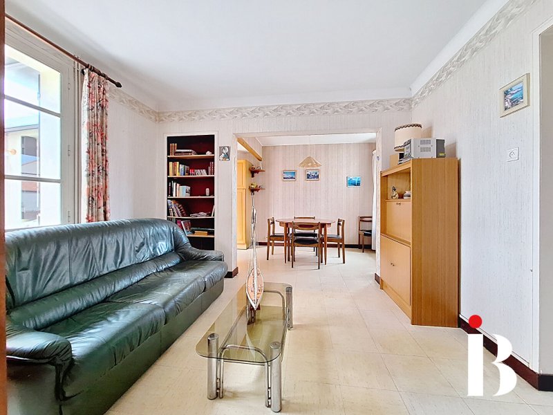COUERON BOURG, beaucoup de charme et de potentiel pour cette maison de plain-pied évolutive offrant salon séjour, cuisine aménagée, 2 chambres, véranda, garage, dépendance. AU CALME et à proximité des écoles commerces et transports
