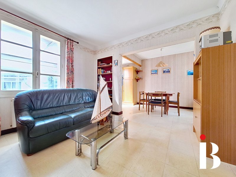 COUERON BOURG, beaucoup de charme et de potentiel pour cette maison de plain-pied évolutive offrant salon séjour, cuisine aménagée, 2 chambres, véranda, garage, dépendance. AU CALME et à proximité des écoles commerces et transports