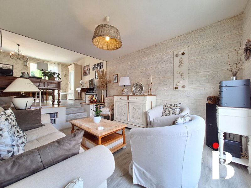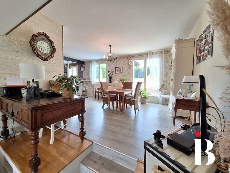 au calme dans le bourg de Couëron, confortable maison offrant une large pièce de vie donnant sur terrasse et jardin sud cuisine aménagée et équipée, 3 belles chambres, nombreux rangements, garage et grenier.