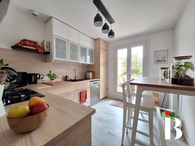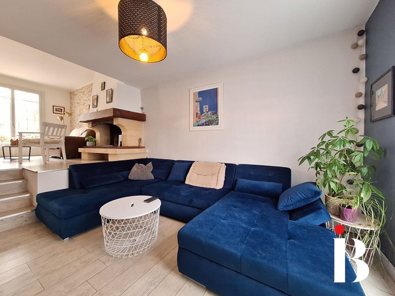 COUERON BOURG Originalité et aménagement soigné sont les atouts de cette maison à la décoration très tendance. Elle vous offre une pièce de vie baignée de lumière et prolongée par une véranda donnant sur un joli jardin arboré et sans vis à vis. 3 chambres, salle de bains et garage. Proche écoles et commerces.