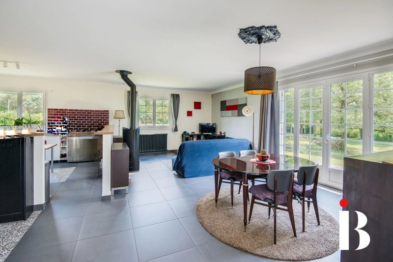 Cadre idyllique pour cette maison en parfait état offrant une pièce de vie plein sud de plus de 60 m2 avec poêle à bois et cuisine aménagée équipée donnant sur une grande terrasse, 3 chambres principales et une 4 ème chambre avec salle d'eau privative et espace dressing, salle de bain, wc et sous-sol .
