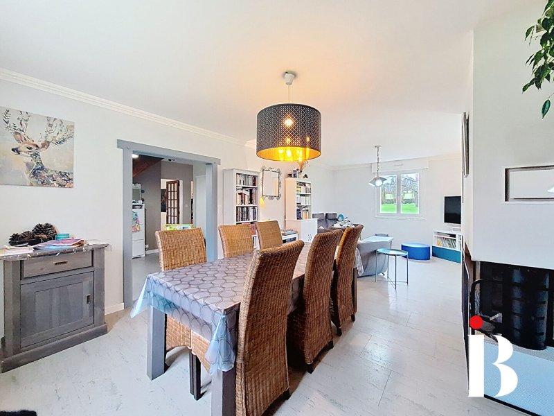 charmante maison aux prestations soignées offrant salon séjour donnant sur terrasse sud et parc paysager de 2 200 m2, 4 chambres dont une en rdc, un bureau, cuisine aménagée et équipée, garage, cave, greniers,