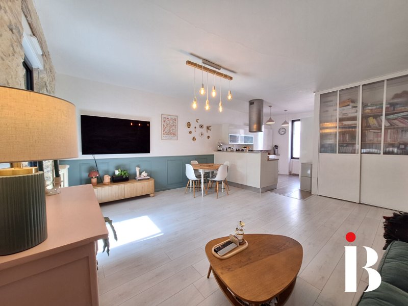 Belle rénovation pour cette maison ancienne en coeur de bourg offrant une spacieuse pièce de vie donnant sur un jardin sud sans vis-à-vis avec. Elle comprend 4 chambres dont une suite parentale avec douche baignoire et dressing, un bureau, une cuisine aménagée et équipée.