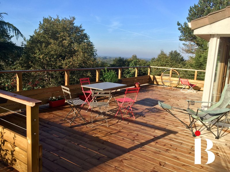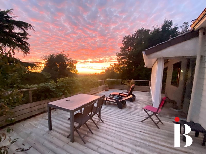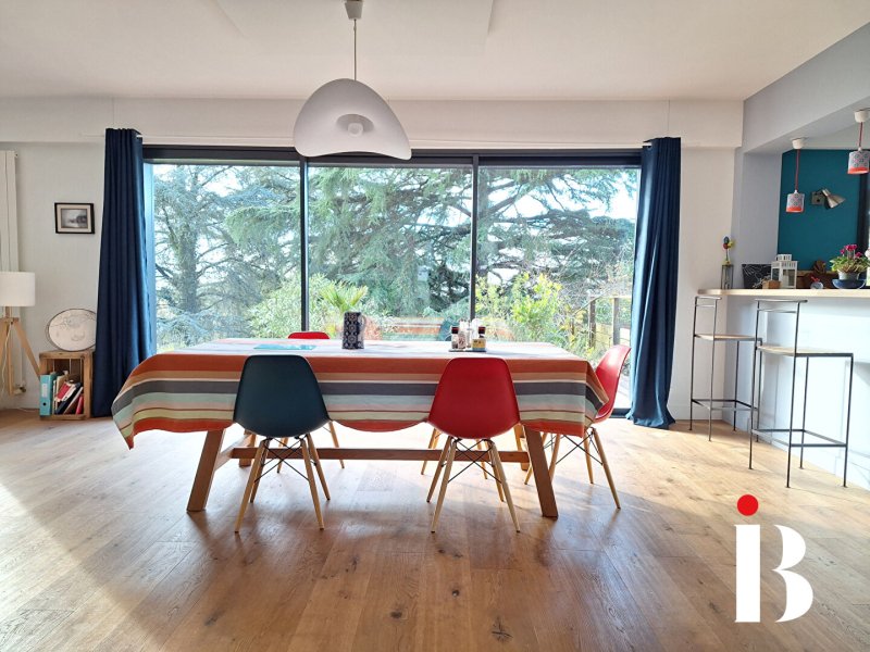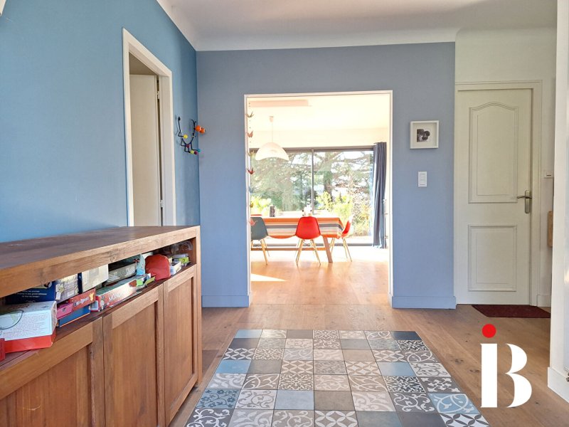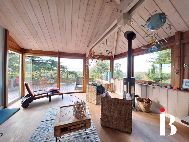 Une grande véranda de 31 m² prolonge l'espace et offre une vue dégagée sur le jardin et la vallée de la Loire.