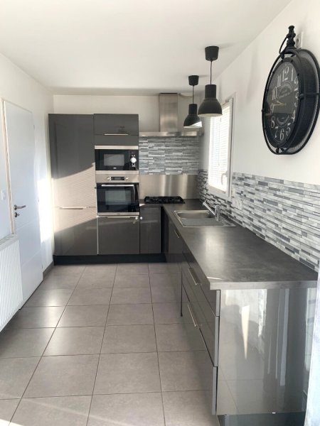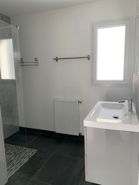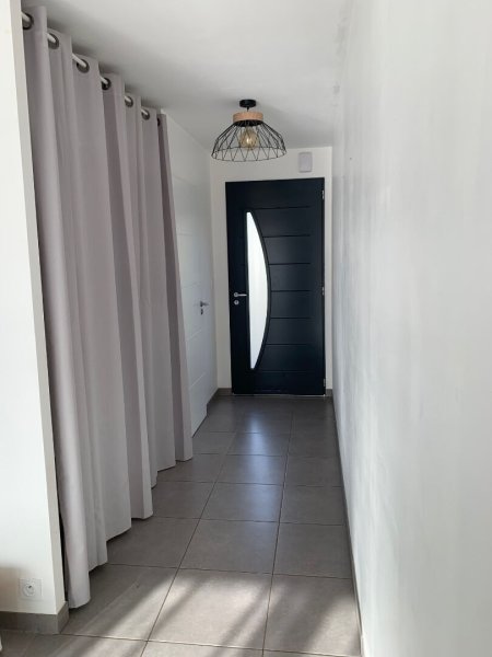 Cugand, maison de plain-pied construite en 2017 aux normes RT2012. Elle dispose d'une entrée avec rangements, d'un espace jour lumineux incluant une cuisine moderne entièrement équipée, d'une arrière-cuisine fonctionnelle et d'un WC séparé. Le coin nuit comprend trois chambres confortables et une salle d'eau avec douche italienne. Un garage attenant complète ce bien, agrémenté d'une terrasse et d'un jardin entièrement clôturé et idéalement exposé.