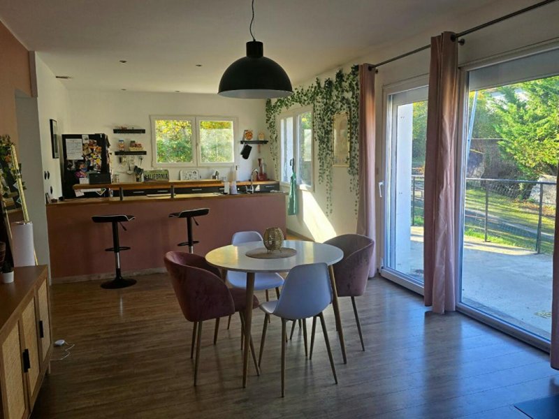 Une entrée desservant une grande piece de vie (42m2)avec sa cuisine ouverte équipée tres lumineuse avec baie vitrée et 2 ouvertures osillo battantes.