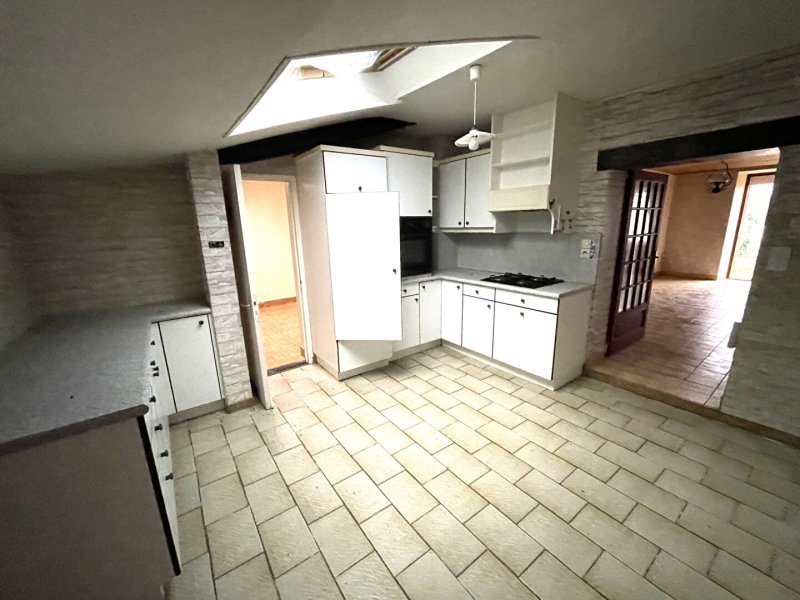 Maison de plain pied de 107m2 habitable . Elle est composée d'un séjour de 27m2 avec cheminée , d'une cuisine, une grande arrière cuisine, une chambre, une salle de bains, WC, cellier avec grenier. Le tout sur 1830m2 de terrain.