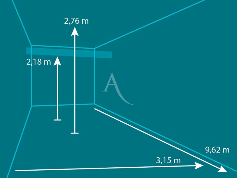 Garage de 30.68 m². Il dispose de l'électricité, d'une hauteur de 2.76 m au maximum et de solives à 2.18 m de haut.