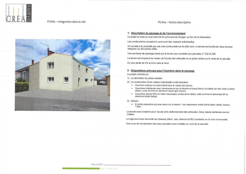 44190 Gorges, Dominique CHARRON vous présente ce projet de construction sur un terrain constructible (libre de constructeurs) de 188 M² à viabiliser : exemple de plans de maison de type T4 (3 chambres) avec au rez de chaussée 1 très belle pièce de vie lumineuse (exposée Sud-Est) avec sa cuisine ouverte, une lingerie et des toilettes puis à l'étage 3 chambres, une salle d'eau et des toilettes.