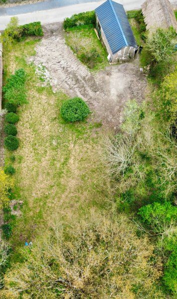 L'entrée du terrain est orientée nord, permettant une belle exposition sud sur le jardin pour la future maison. Elle dispose d'un bâti existant relié à l'électricité pouvant faire office de garage ou d'atelier de 30m2 actuellement répartie en deux pièces distinctes de 15m2.