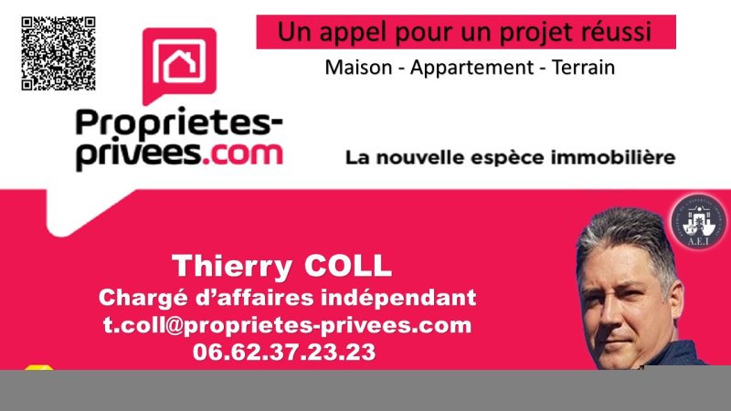 Pour visiter et vous accompagner dans votre projet, contactez Thierry Coll, agissant sous le statut de conseiller immobilier indépendant auprès de la SAS Propriétés privées au 06 62 37 23 23 ou par courriel à t.coll@proprietes-privees.com.