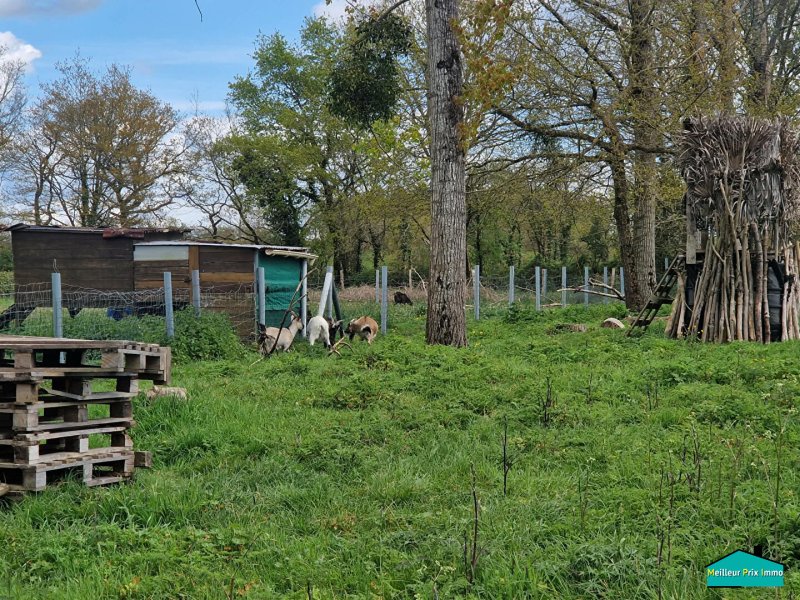 En second rideau, plus de 3 000 m² de terrain boisé et environ 450 m² constructible au calme et proche du bourg.