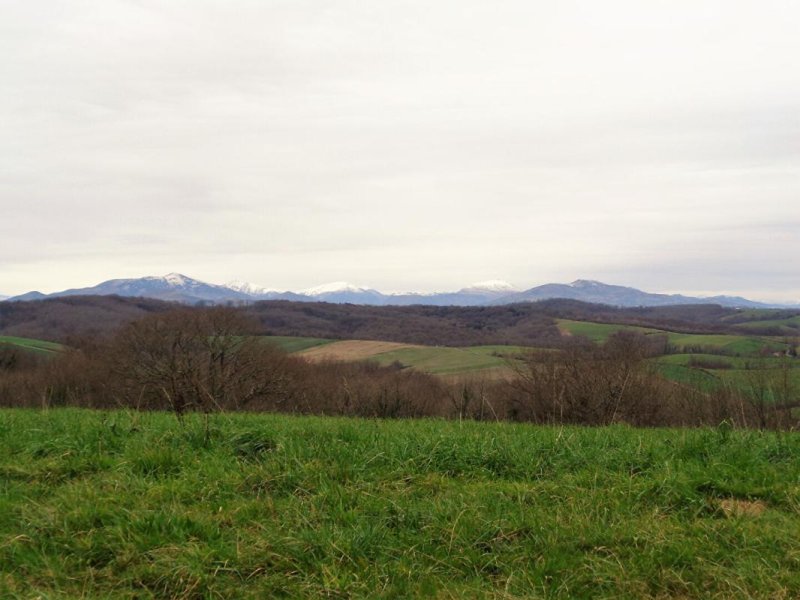 64520 BIDACHE pays basque. Terrain constructible exceptionnel de 5 hectares d'un seul tenant sur les hauteurs de Bidache, avec vue panoramique sur les montagnes. Calme absolu, aucun vis-à-vis, hors lotissement.