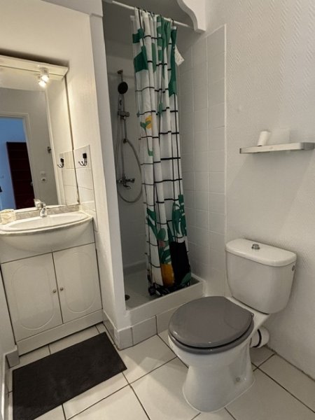 Studio en fac du cinéma comprenant: une pièce principale avec coin nuit et coin cuisine aménagé et équipé (frigo top, plaques, four, hotte), une...