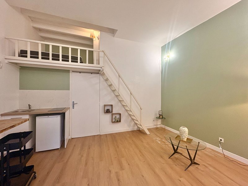 Studio en bon état d'une surface habitable de 18.08m² au premier étage d'une petite copropriété. Comprenant un placard dans la pièce de vie, un...