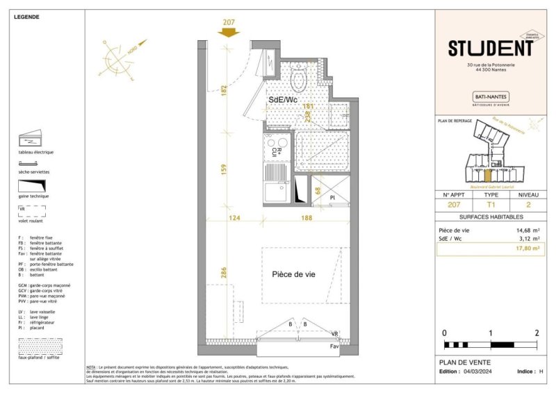 Studio d'une surface habitable de 24,95m². Il se compose d’une pièce de vie avec coin cuisine...